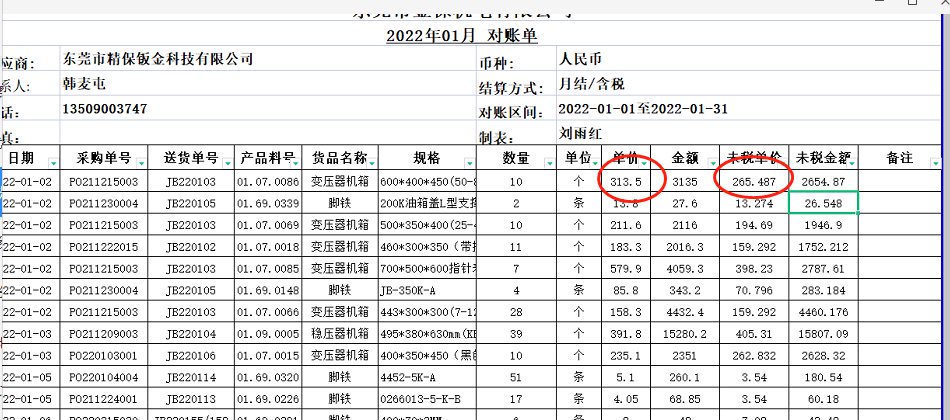 老师好!像图片里的单价跟未税单价,比如它原来的金额是313.5,那么它的未税单价不应该是277.44吗?(313.5/1.13)=277.44,为什么表格里的未税单价是265.487?怎么算出来的,麻烦帮忙解答一下!谢谢老师了!